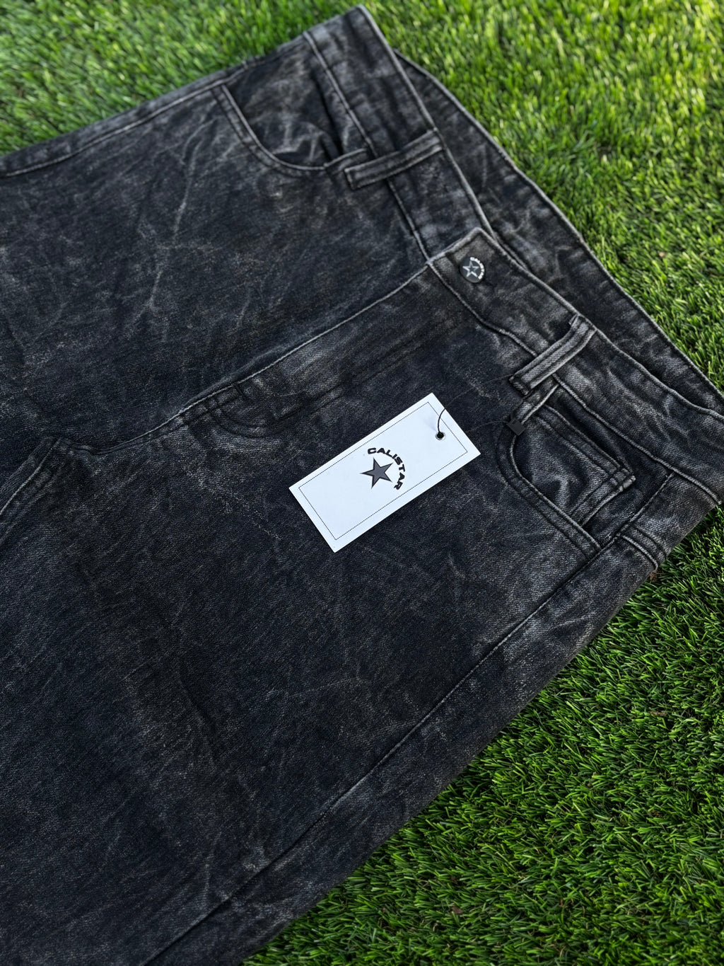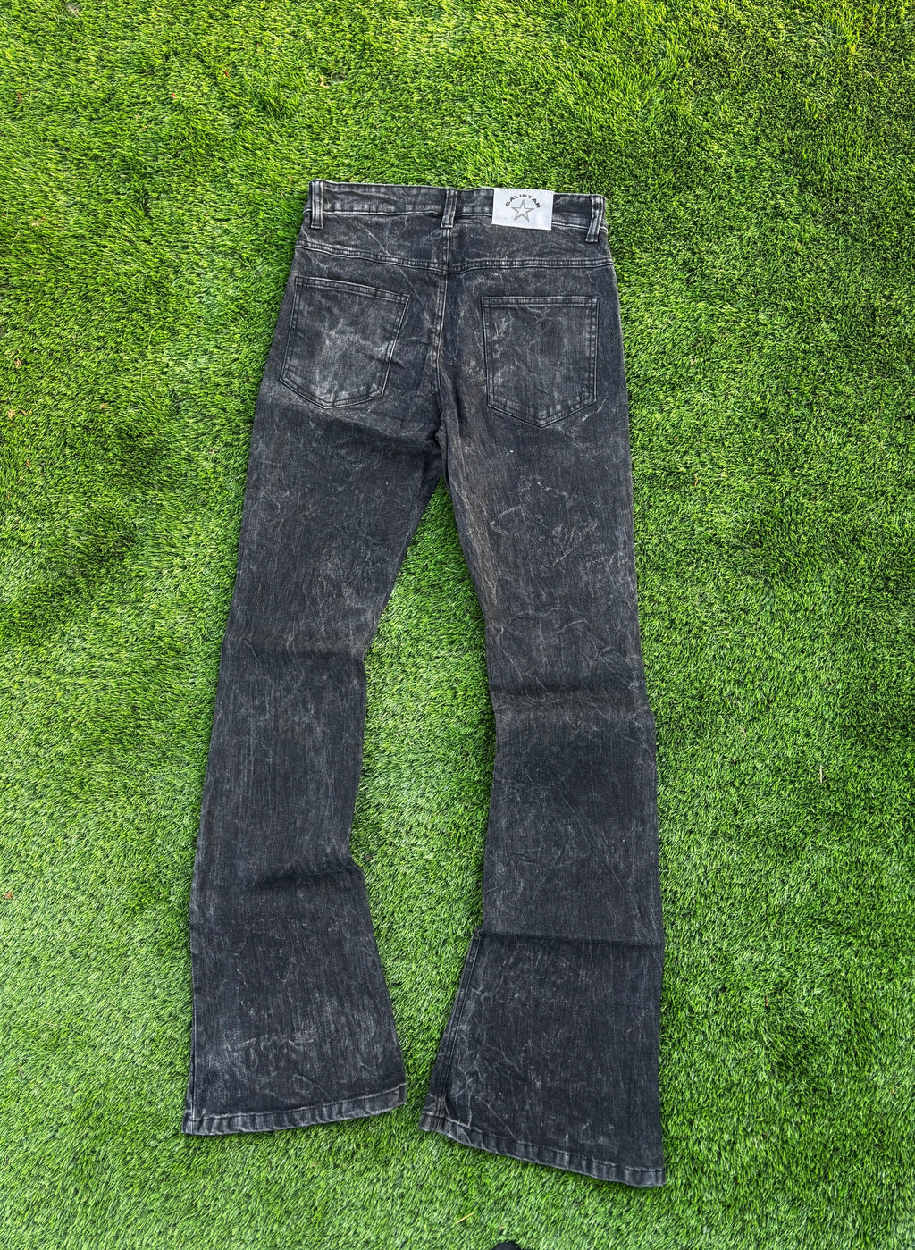 Step up your streetwear game with the CALI STAR Black Flare Jeans - crafted from top-quality denim built to last. These jeans feature a washed, distressed finish that gives off effortless vintage vibes while maintaining a premium look and feel. Designed with a slim upper fit and a gradual flare at the leg